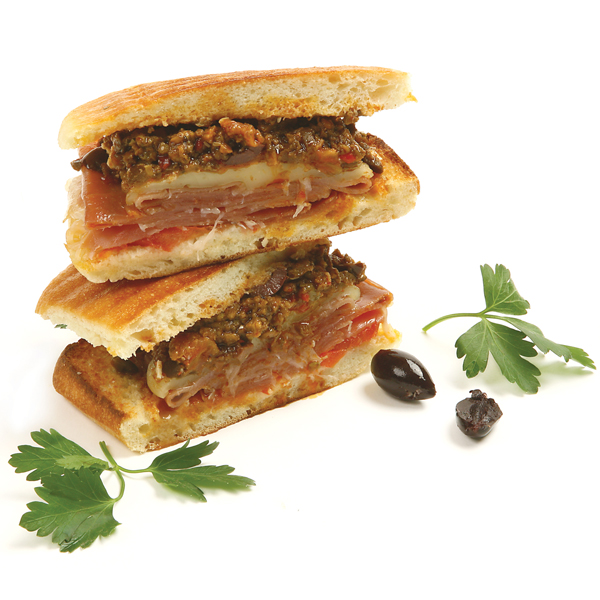 Basil Pesto, Black Olive & Feta Crostini Spread302E / 10 ozThis flavorful combination of Mediterranean specialties, including parmesan and Romano cheese creates an all-in-one topping! We've done all the work for you, mixing top quality ingredients with a special variety of flavors and textures. Enjoy!